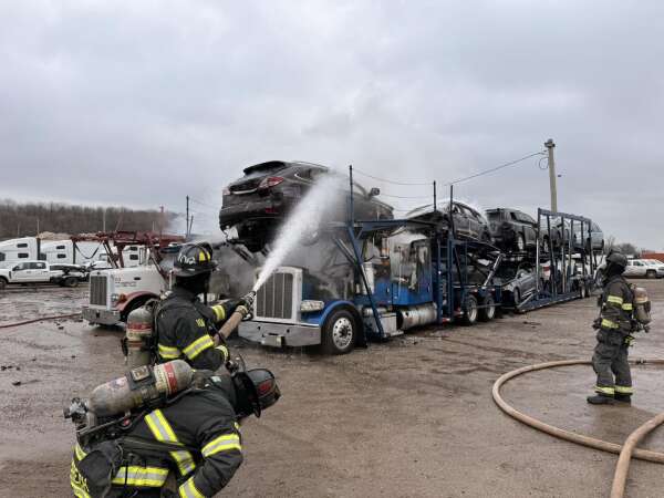 Several vehicles at a semitruck parking lot in East Dundee caught fire Friday after a running semi was left unattended, authorities said.